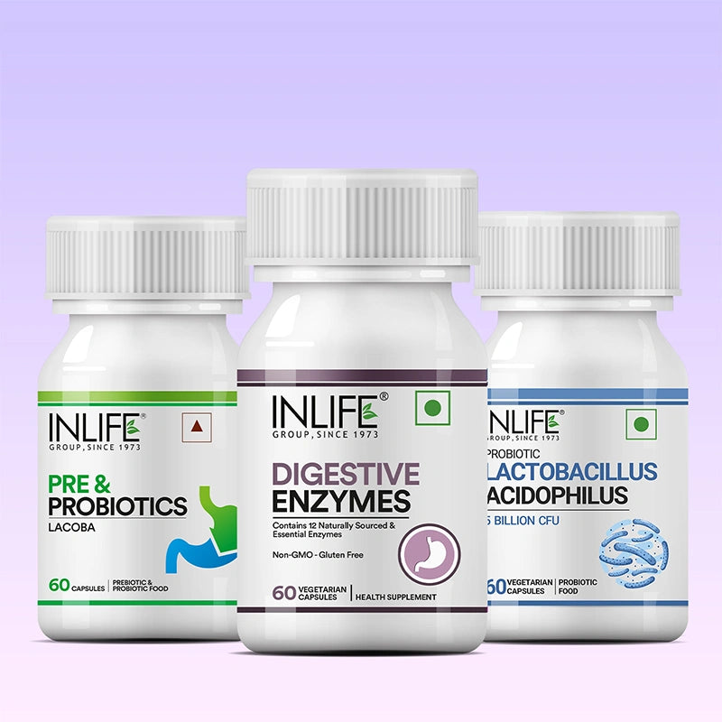 Inlife Prebiotic & Probiotics Forte + Digestive Enzymes | 25 billion CFU | Vegetarian Combo Pack