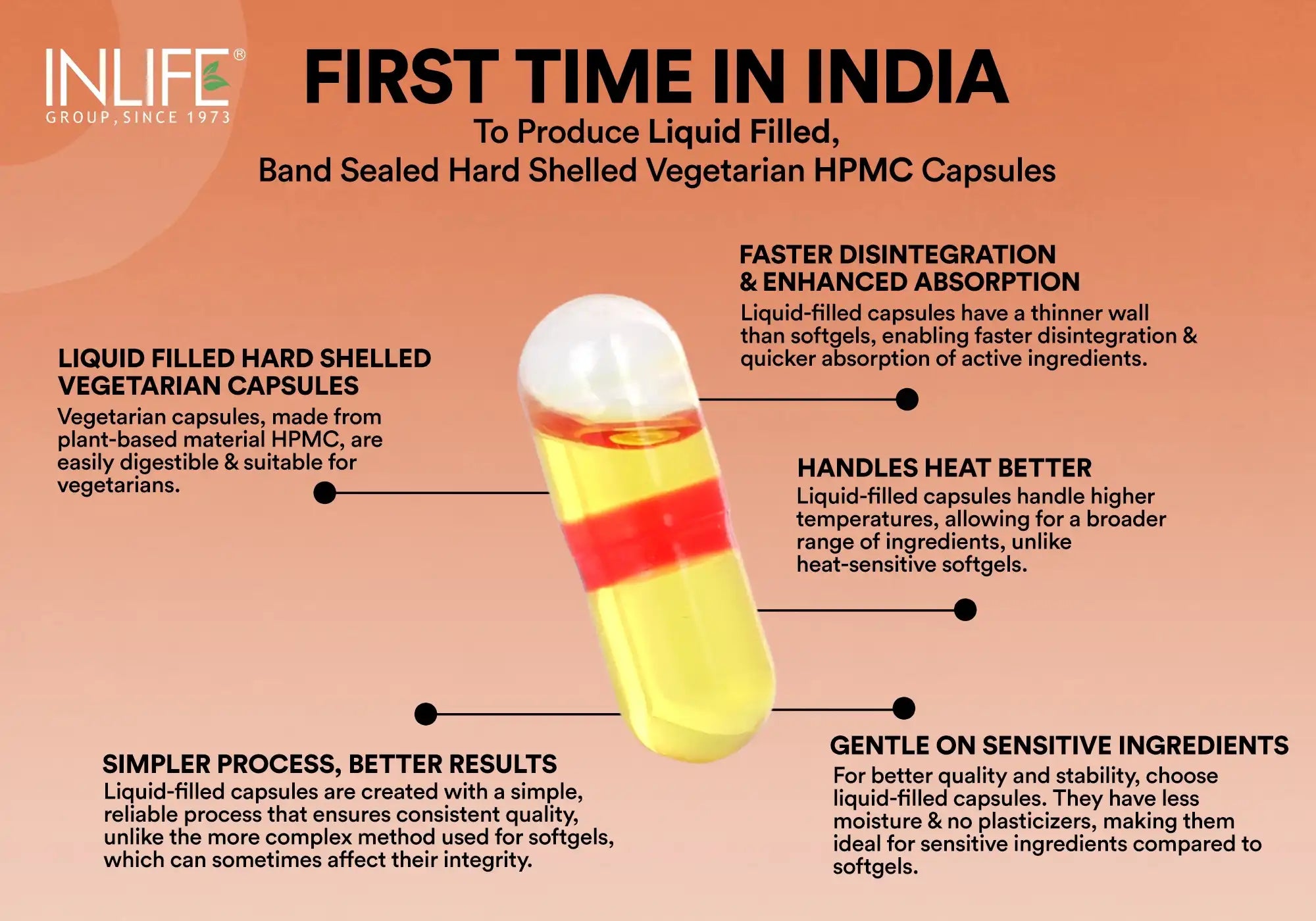 INLIFE Healthcare is proud to be the first in India to introduce liquid-filled hard gelatin and HPMC capsules.