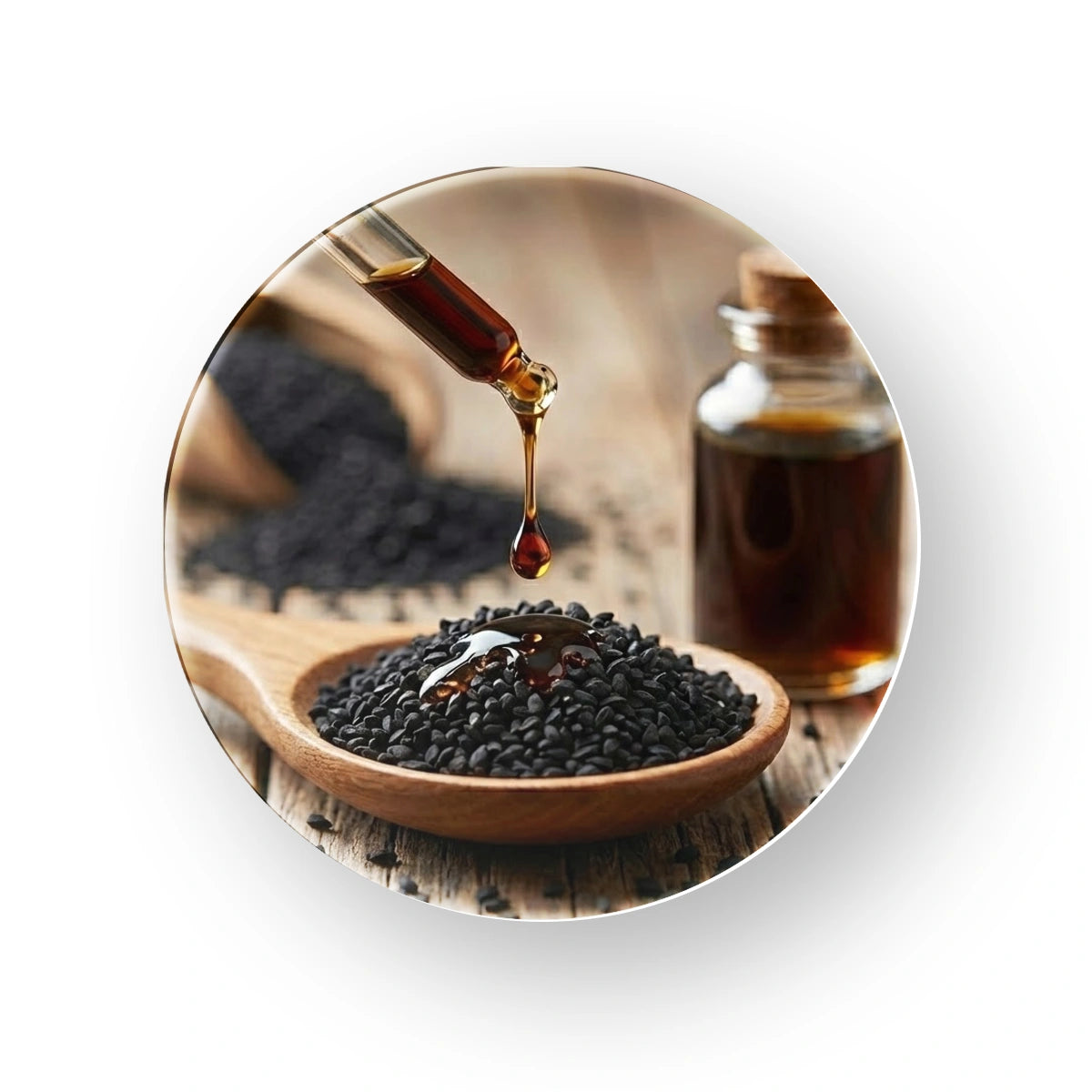Blackseed oil 480 mg (Standardized to Thymoquinone > 0.83%). Black seed oil is traditionally valued for its rich profile of natural compounds, including thymoquinone, which is known for its antioxidant properties. This standardized form ensures consistent potency