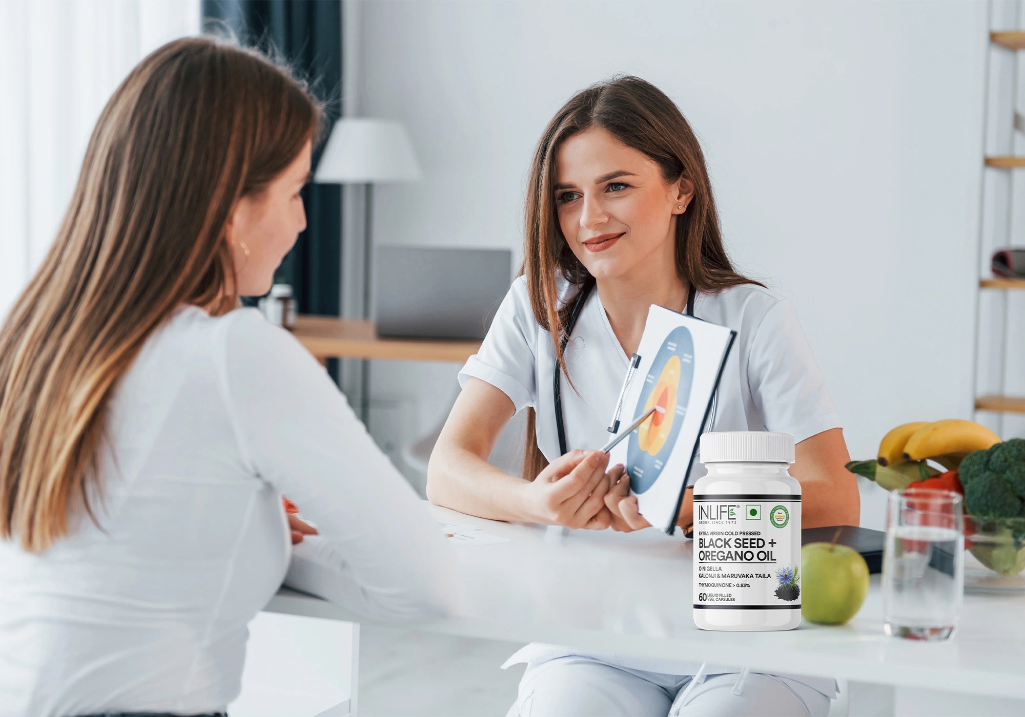 Inlife Black Seed Oil & Oregano Oil Capsules are crafted using premium extra virgin cold-pressed black seed oil combined with natural oregano oil, offering a convenient way to add these time-honored traditional oils to your routine.