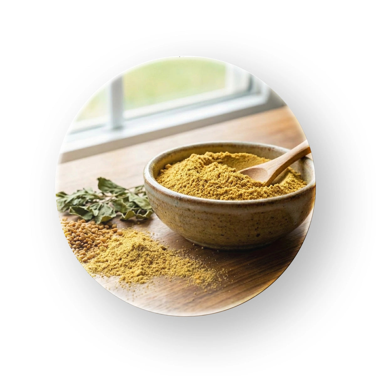 The powder is derived from carefully processed fenugreek seeds, known for their naturally high fiber and protein content.