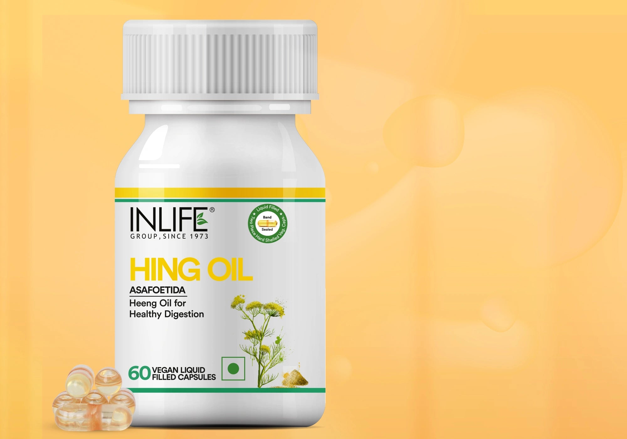 Inlife Hing Oil capsules are a dietary supplement that contains pure hing oil extracted from asafoetida. Each capsule is vegetarian and provides 15 mg of Hing Oil per serving.