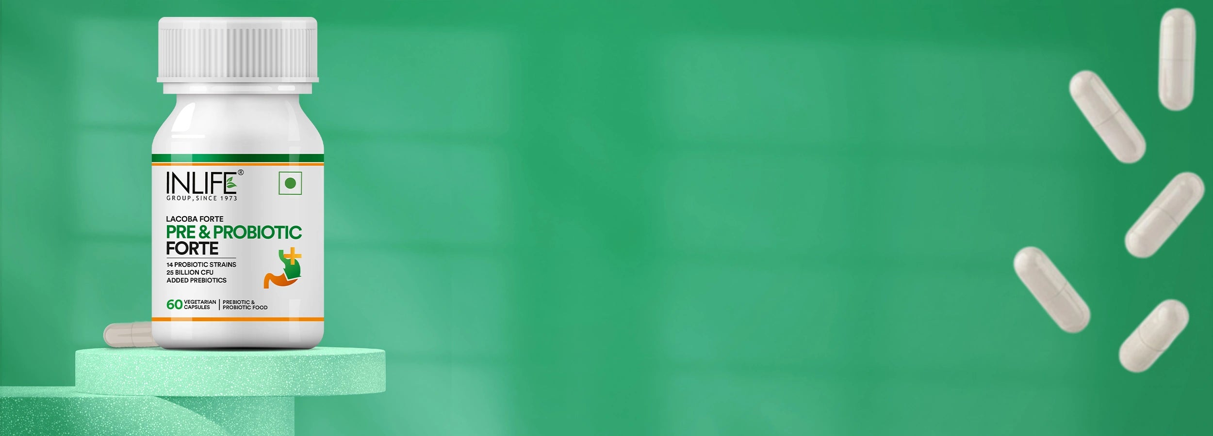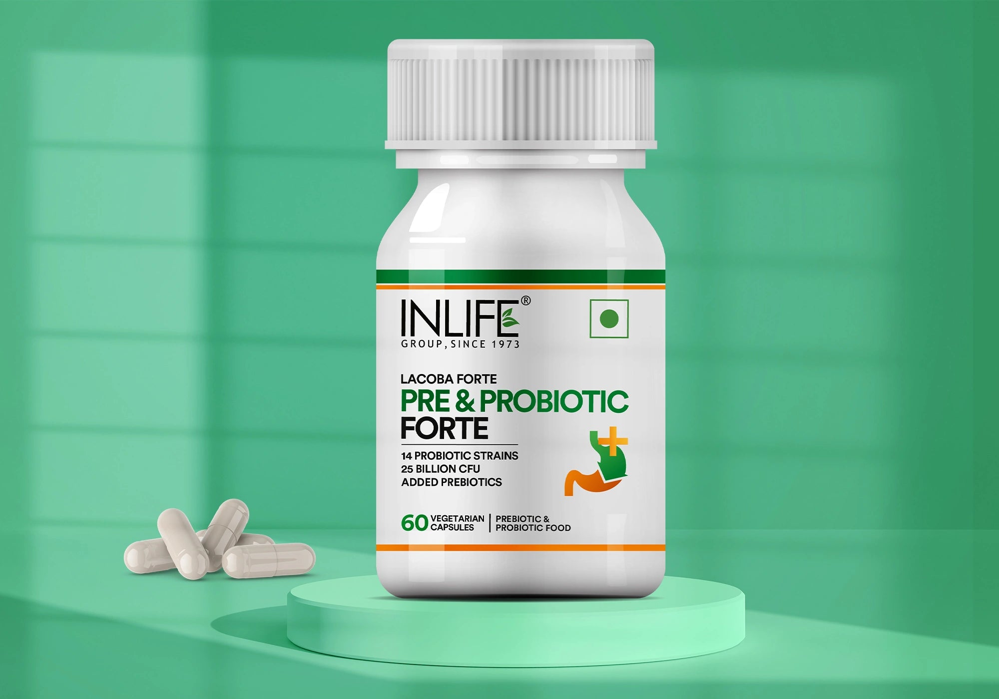Inlife Pre & Probiotic Forte Capsules are thoughtfully developed to deliver a high-strength blend of prebiotics and probiotics designed to support daily gut balance and overall digestive wellness. Each serving provides 25 billion CFU of live cultures from 14 scientifically studied probiotic strains and enriched with plant-based prebiotic Fructooligosaccharides (FOS),