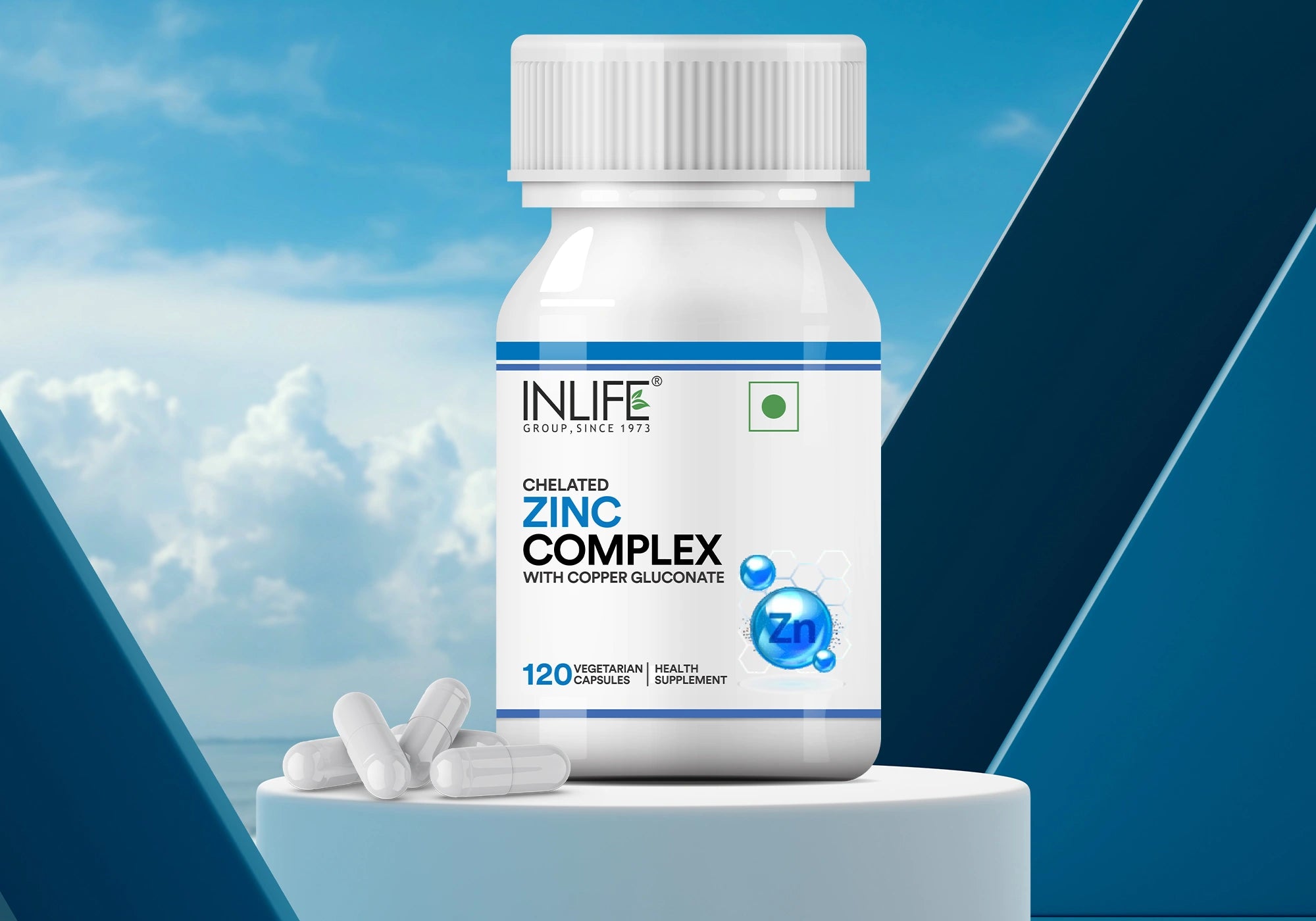 Inlife Zinc Complex provides a dual-zinc formulation (zinc picolinate + zinc gluconate), plus copper gluconate, in a vegetarian capsule aiming to support daily zinc needs with enhanced absorption.